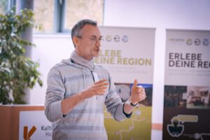 2023 haben er und seine Frau Angelika die Kirche ersteigert und seither schier Unglaubliches geleistet. Das neue Dach konnte heute besichtigt werden, von der Decke droht nichts mehr herunter zu fallen, der Innenraum ist komplett beräumt, Mauern wurden zurück gebaut. Noch Anfang dieser Woche erhielt die Kirche einen neuen Fußboden, auf dem nun mehr als 100 Gäste der feierlichen Einweihung saßen, den Worten lauschten und den musikalischen Beiträgen des CURLAND TRIO Beifall spendeten.